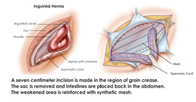 HOW IS OPEN SURGERY FOR INGUINAL HERNIA PERFORMED?